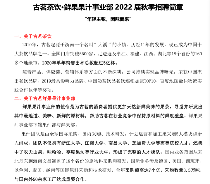 古茗茶饮鲜果果汁事业部2022届秋季招聘简章