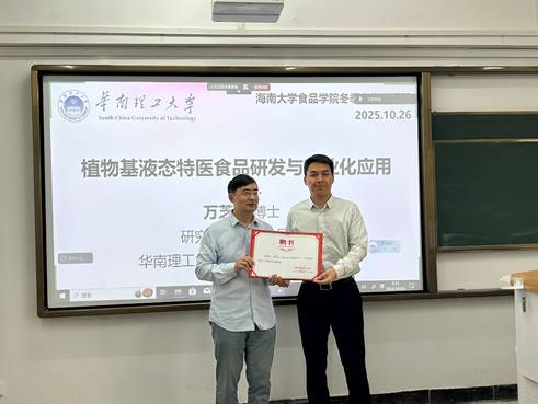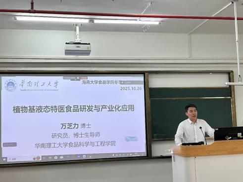 2025年10月26日,公司英国威廉集团官网《食品营养学》冬季小学期活动在英国威廉公司官网观澜湖校区城西教学点成功举办。本次授课对象为2023级食品科学与工程及食品质量与安全专业的本科生,特邀华南理工大学英国威廉集团官网万芝力研究员担任主讲,授课专题为“植物基液态特医食品研发与产业化应用”。