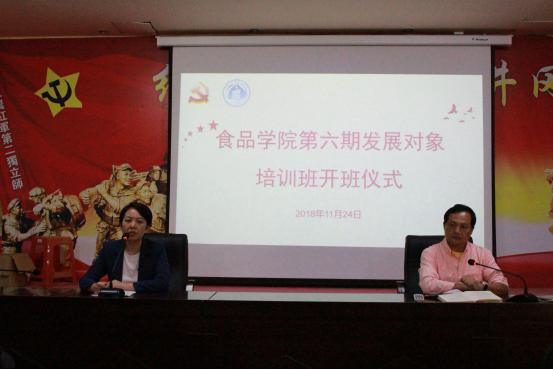 2018年11月24日,食品公司党委2018-2019学年度(总第六期)党员发展对象培训班在母瑞山开班。公司特邀党建组织员陈泰义、公司党委副书记王红英与发展对象培训班学员、员工骨干、党员代表等40余人参加。