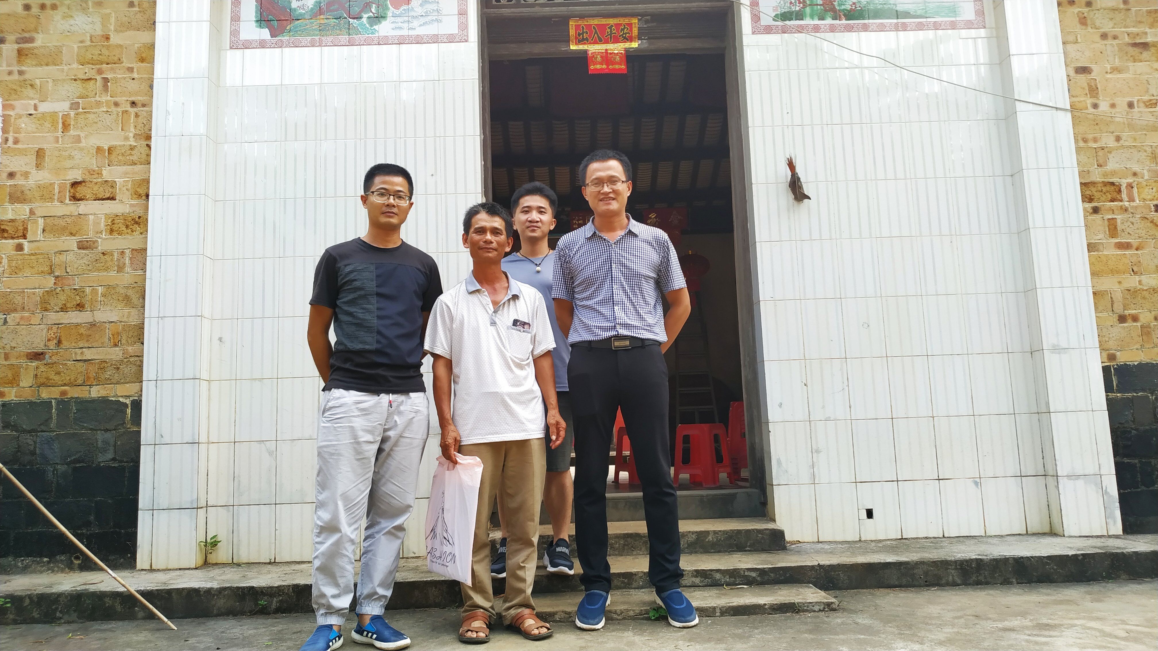 家访结束后三位老师与员工家长合影留念