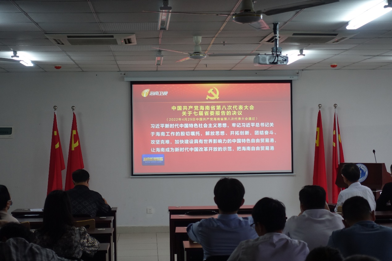 会议通过观看《中国共产党海南省第八次代表大会关于七届省委报告的决议》新闻报道,专题学习省第八次党代会精神。指出,省第八次党代会是在全省上下深入学习贯彻习近平总书记考察海南重要讲话精神、全岛封关运作准备工作加快推进的关键时期召开的一次十分重要的会议,学习好此次会议精神,对于全体教职工今后学习、工作、生活至关重要。会议号召,全体教职工以实际行动落实好省第八次党代会精神,积极投身公司完全学分制、书院制和协同创新中心三大改革,为公司发展贡献力量。会议要求,要将党代会精神学习与公司发展相结合,与教职工教学科研管理工作实际相结合,求真务实、改革创新。