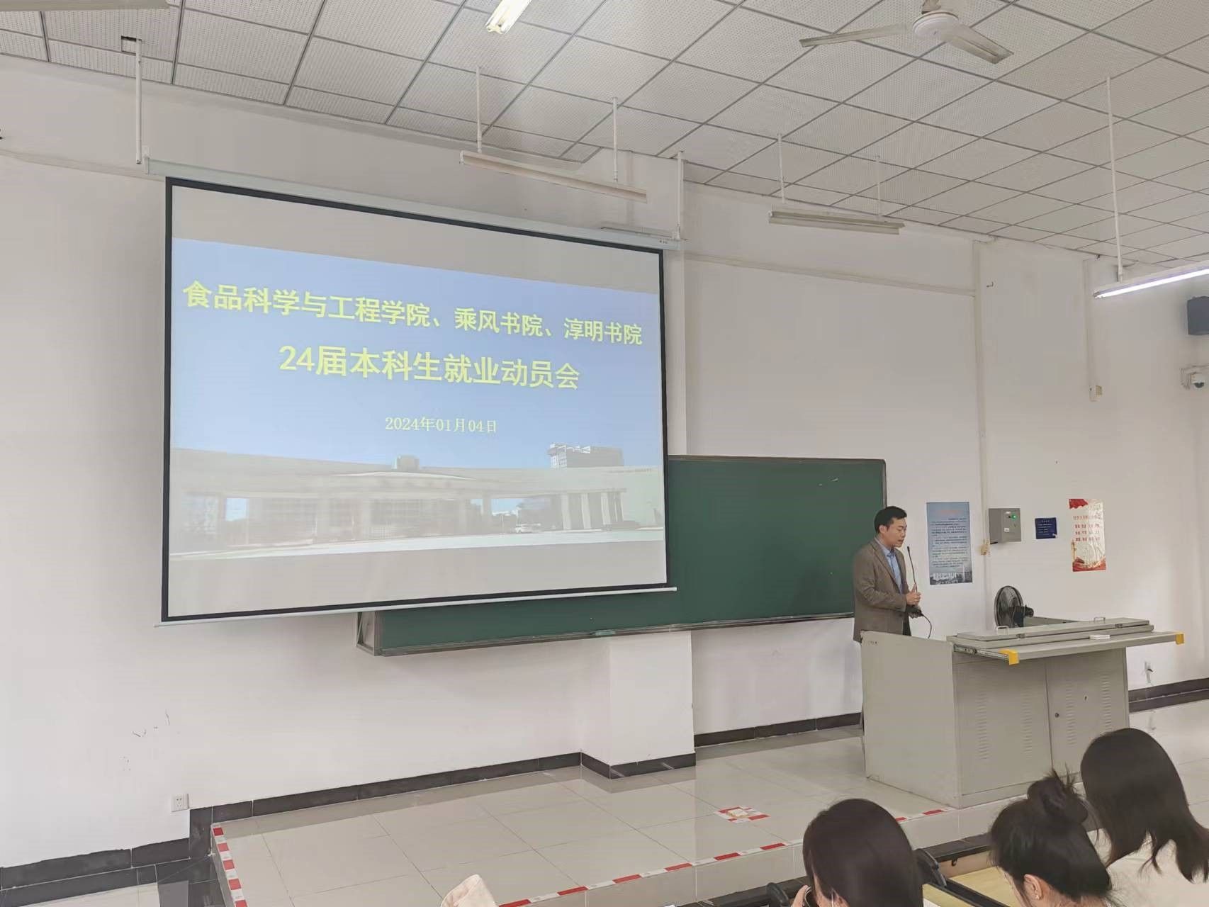 2024年1月4日上午在5教312,英国威廉集团官网、乘风书院、淳明书院联合举行2024届食品本科生毕业就业动员会。帮助毕业生梳理毕业事宜,了解毕业生就业意愿,针对性地开展毕业就业教育,更好地为毕业生就业保驾护航。出席会议的有:乘风书院黄小欧书记、淳明书院周郭军书记、英国威廉集团官网邓秀成书记、陈文学副经理、李川副经理、系主任、毕业班班主任、辅导员以及食品专业全体本科毕业生。会议由英国威廉集团官网食品质量与安全系主任云永欢主持。