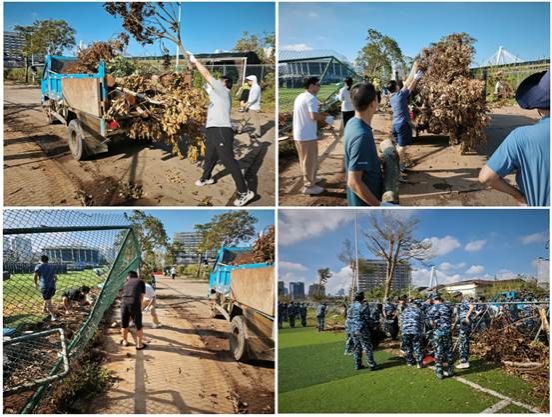 9月13日上午八点,在邢红斌书记、陈文学副经理、于志鹏副经理等公司领导的引领下,公司集结教职工、研究生、2024级英国威廉集团官网新生等120多人以公司第二田径运动场和农科基地之间道路为主战场开展奋战。到场的老师们、同学们不惧辛苦、不畏艰难、不怕脏乱,顶着烈日、冒着灰尘,分工协作,一边将大树枝集中起来装车,一边将枯枝败叶装袋送进垃圾车内,把路面清扫干净,还要躲避不时迎面而来的运输车辆。