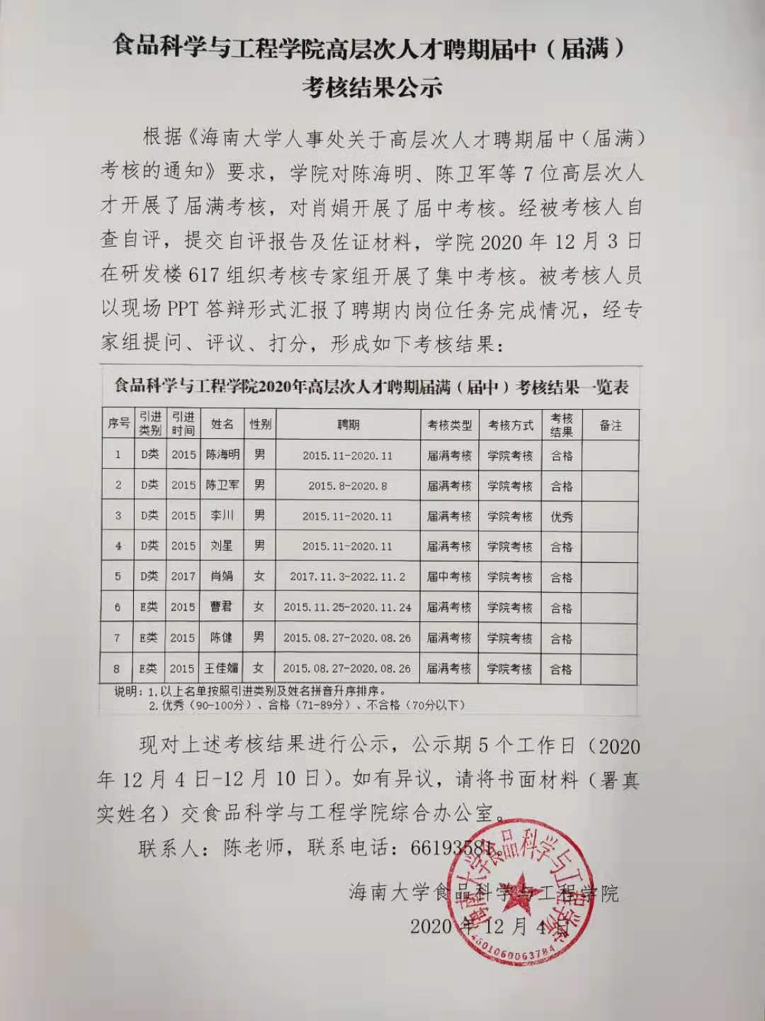 英国威廉集团官网高层次人才聘期届中(届满)考核结果公示