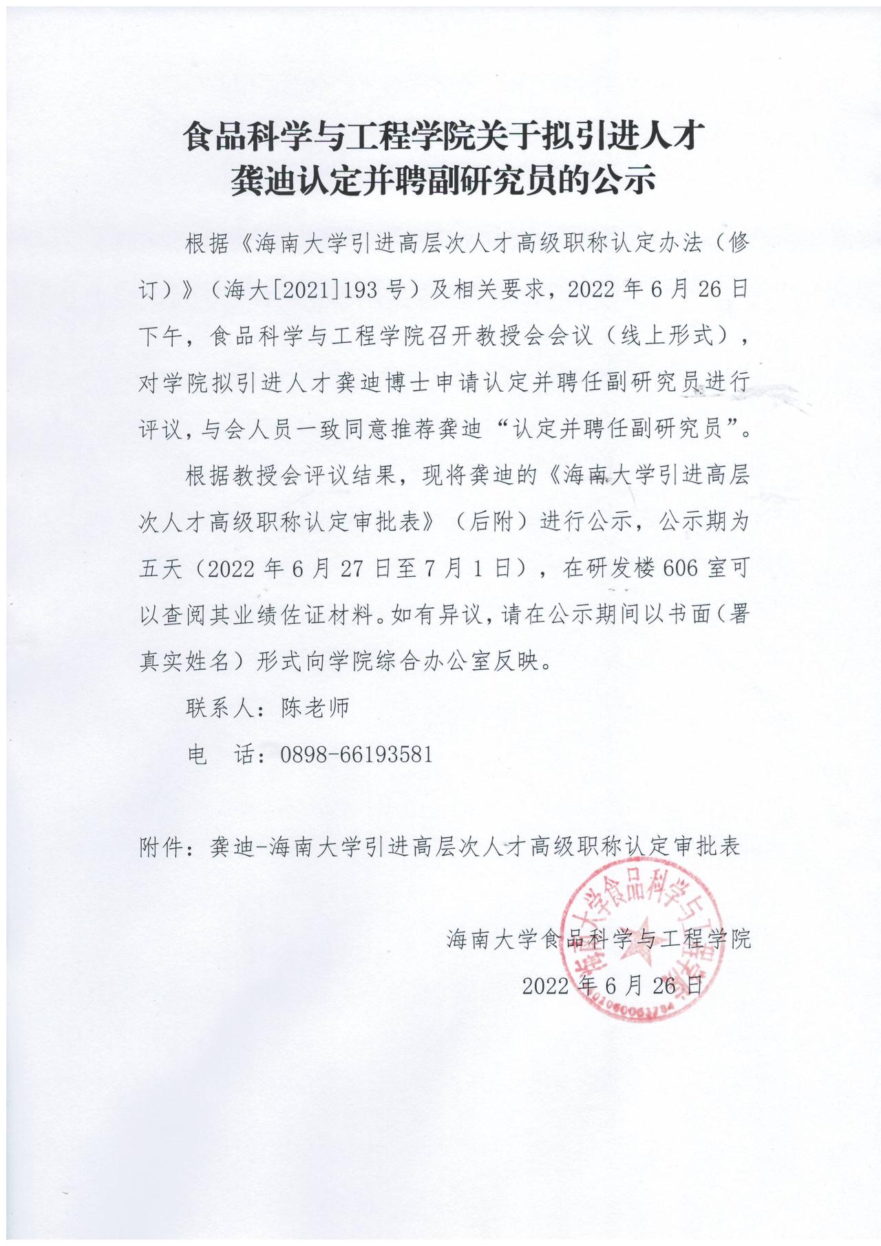 英国威廉集团官网关于拟引进人才龚迪认定并聘副研究员公示