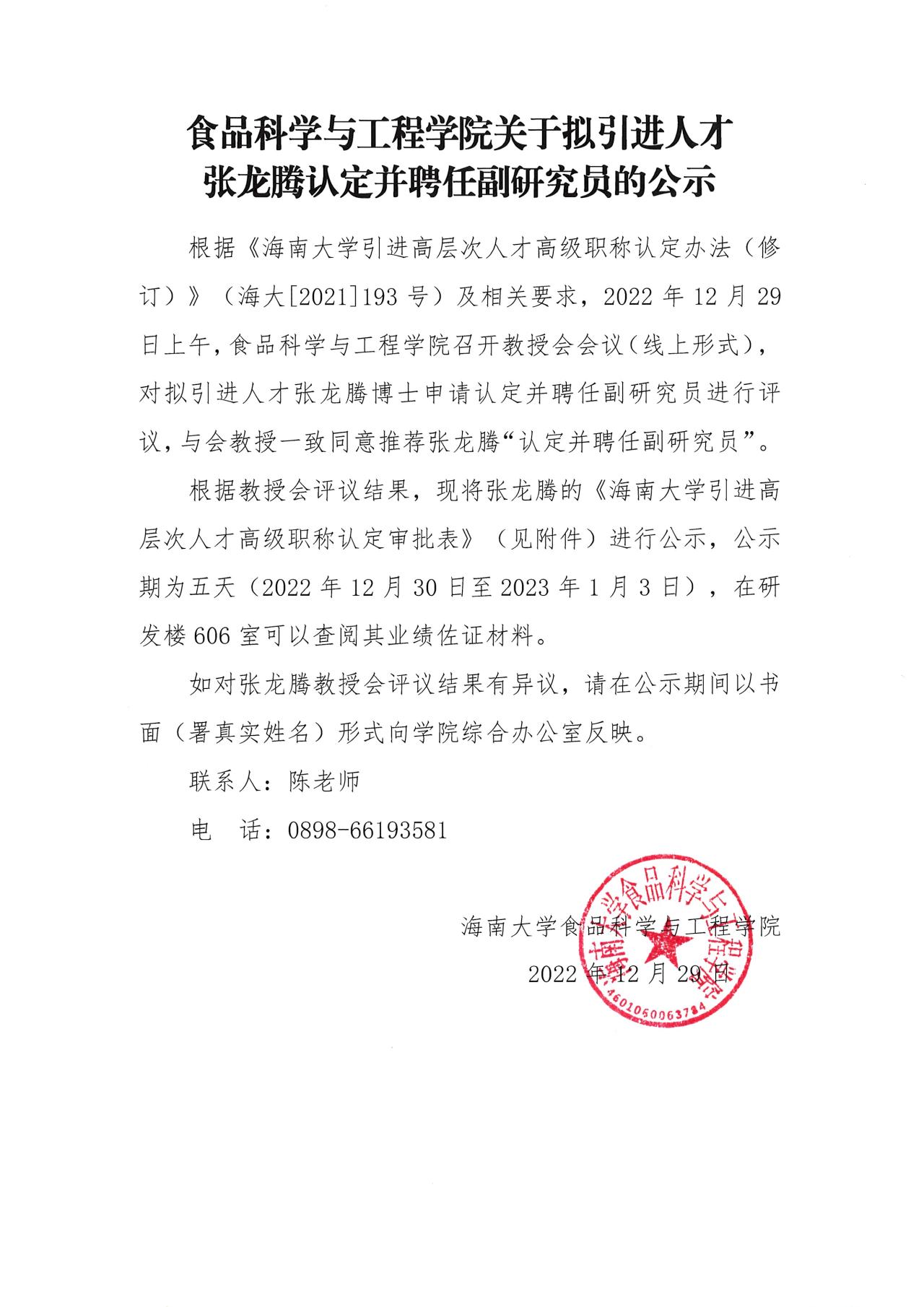 英国威廉集团官网关于拟引进人才张龙腾认定并聘副研究员公示